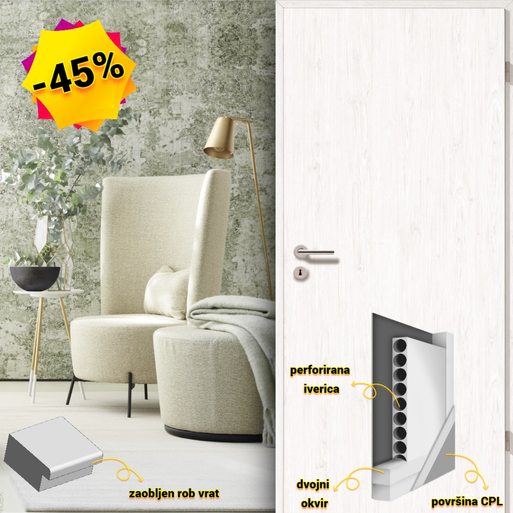 Akcijska ponudba zajema vrata s sredico iz perforirane iverice in konstrukcijsko ojačan okvir
