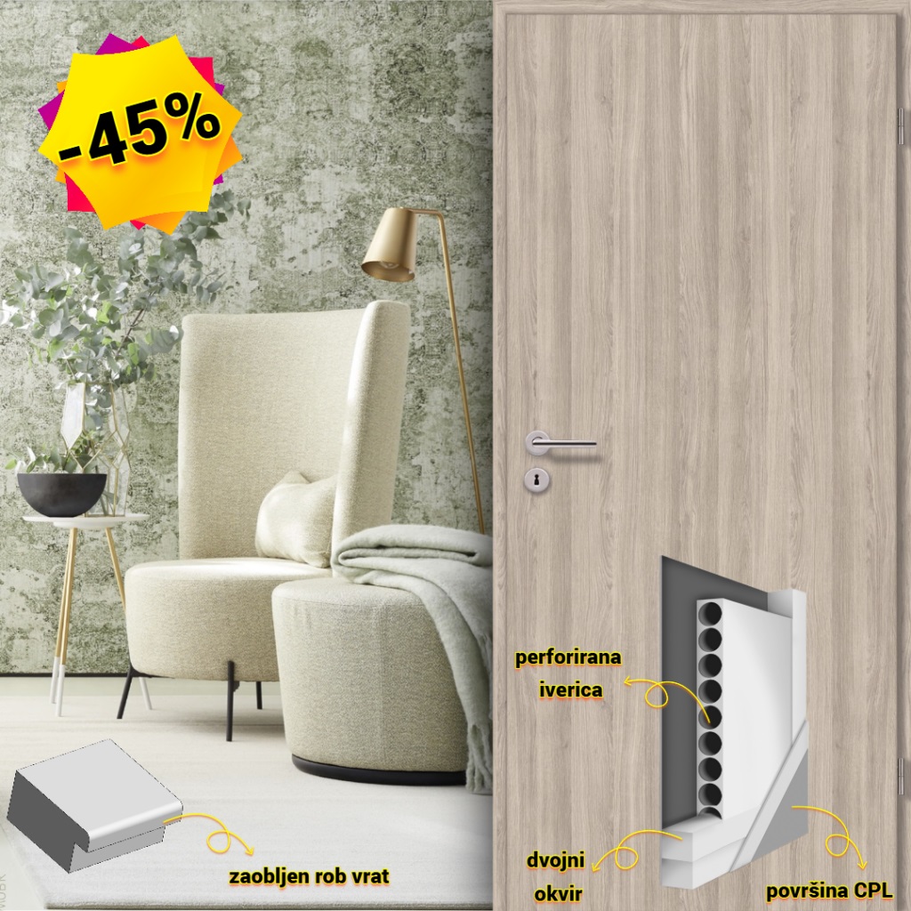 Akcijska ponudba zajema vrata s sredico iz perforirane iverice in konstrukcijsko ojačan okvir
